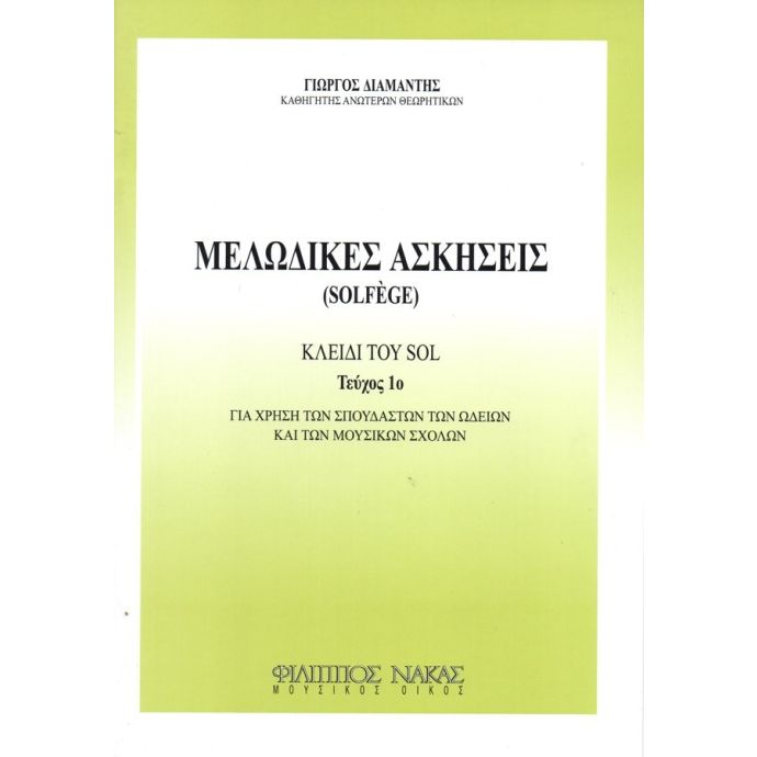ΜΕΛΩΔΙΚΕΣ ΑΣΚΗΣΕΙΣ (SOLFEGE) 1Ο ΤΕΥΧΟΣ - ΚΛΕΙΔΙ ΤΟΥ SOL (ΔΙΑΜΑΝΤΗΣ)